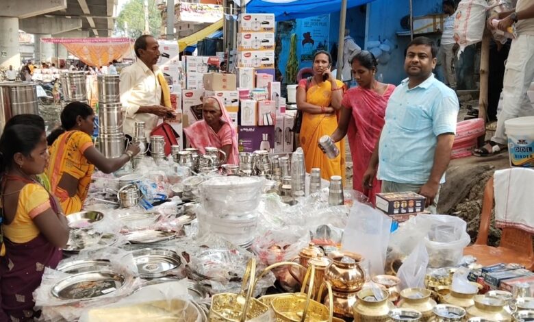 धनतेरस एवं दिवाली पर्व की सामान खरीदने के लिए लोगों की दुकान पर उमड़ी भीड़