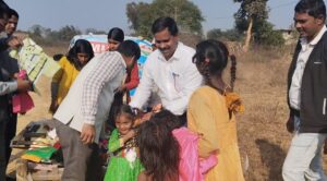मेराल। आनंदमार्ग प्रचारक संघ, शाखा–मेराल के रजत जयंती वर्ष के विशेष अवसर पर आनंदमार्ग यूनिवर्सल रिलीफ टीम (AMURT), मेराल के बैनर तले मेराल ग्राम के वार्ड संख्या 11 में नि:शुल्क गर्म वस्त्र वितरण शिविर का आयोजन किया गया। शिविर में दो दर्जन से अधिक उरिया नदी के किनारे झोपड़ी में गुजर बसर करने वाले मुसहर परिवार के लोग की स्वेटर, जैकेट, इनर, टोपी, मफलर, मोजा, शर्ट–पैंट एवं साड़ियाँ वितरित की गईं।