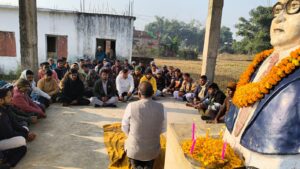 मेराल । सामाजिक परिवर्तन केंद्र के तत्वावधान में संविधान निर्माता बोधिसत्व बाबासाहेब डॉक्टर भीमराव अंबेडकर का 69 वां महापरिनिर्वान दिवस गुरु रविदास आश्रम संगबरिया मेराल में मनाया गया। इस अवसर पर बामसेफ के स्टेट कोऑर्डिनेटर सह एससी एसटी कर्मचारी संघ गढ़वा के अध्यक्ष रघुराई राम ने बाबासाहेब डॉक्टर भीमराव अंबेडकर के प्रतिमा पर पुष्प अर्पित कर श्रद्धांजलि दी गई। साथ ही उपस्थित लोगों ने भी बाबा साहेब डॉक्टर भीमराव अंबेडकर के प्रतिमा पर पुष्प अर्पित किया।