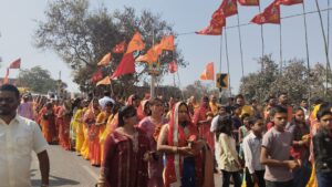 मेराल। प्रखंड के पचपेड़ी संखड़िया पहाड़ी स्थित महावीर मंदिर परिसर में हनुमत प्राण प्रतिष्ठा एवं महायज्ञ का शुभारंभ रविवार को भव्य कलश यात्रा के साथ हुआ। हजारों की संख्या में महिला-पुरुष श्रद्धालुओं ने भाग लेकर पूरे क्षेत्र को भक्तिमय बना दिया। आसपास के दर्जनों गांवों से पहुंचे श्रद्धालुओं के कारण पूरा इलाका धार्मिक उत्साह और आस्था से सराबोर नजर आया।
